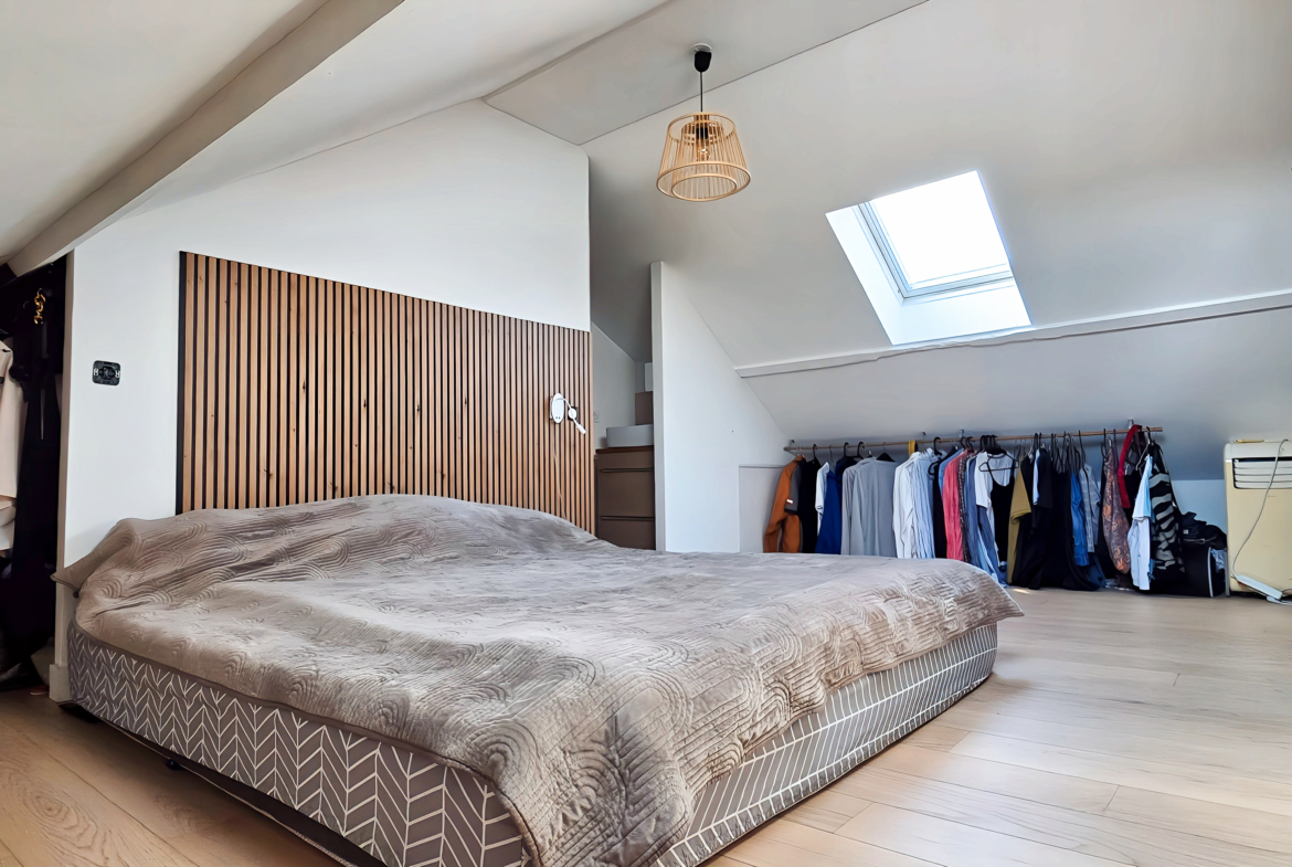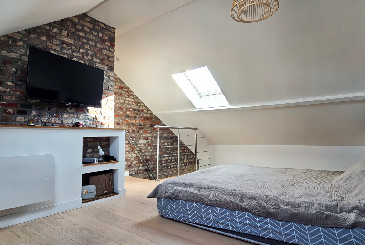 À l’étage, trois belles chambres, dont une suite parentale au charme fou avec son mur en briques apparentes, véritable clin d’œil au style industriel chic, et sa salle d’eau privative.