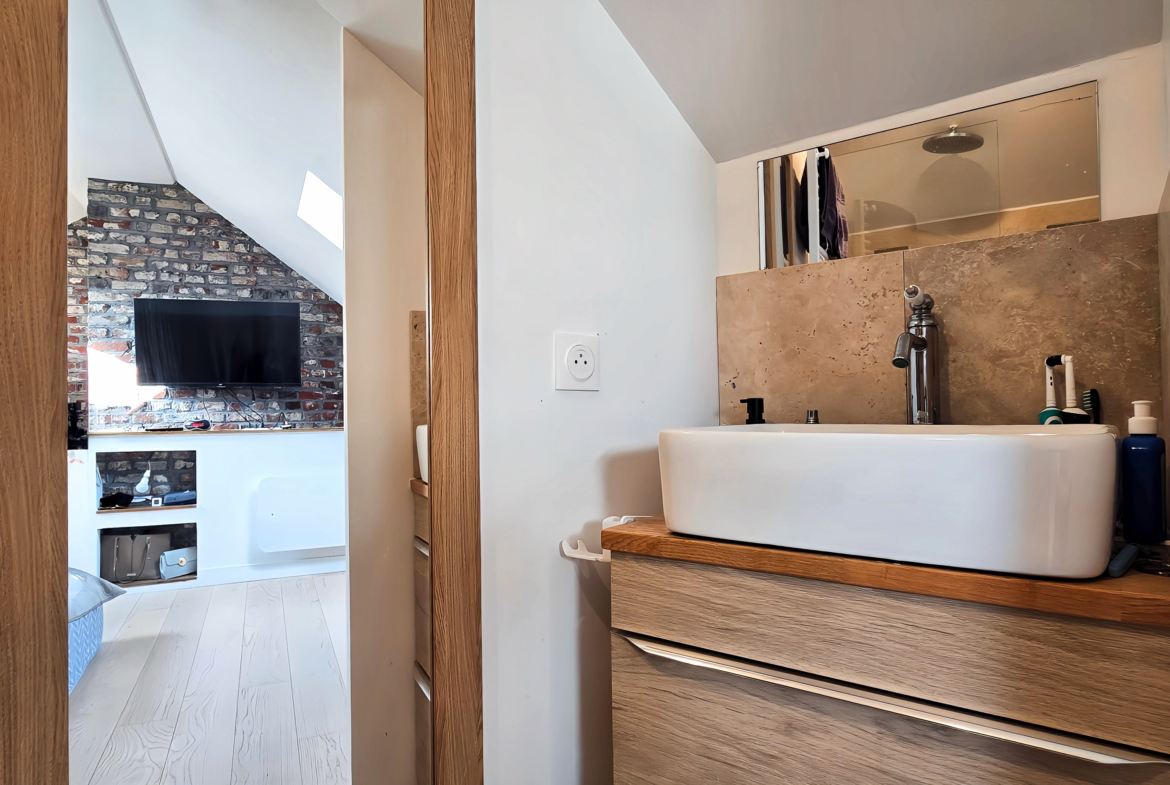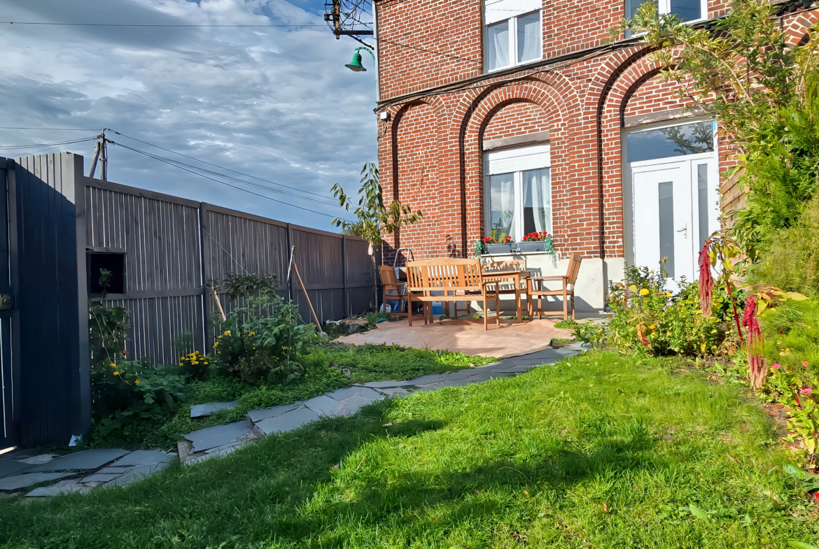 À l’extérieur, un petit jardin soigneusement aménagé prolonge le plaisir des beaux jours. Et l’adresse ajoute un atout de taille : nous sommes au cœur d’Hallennes-lez-Haubourdin, où tout est accessible à pied — commerces, écoles, transports et services.