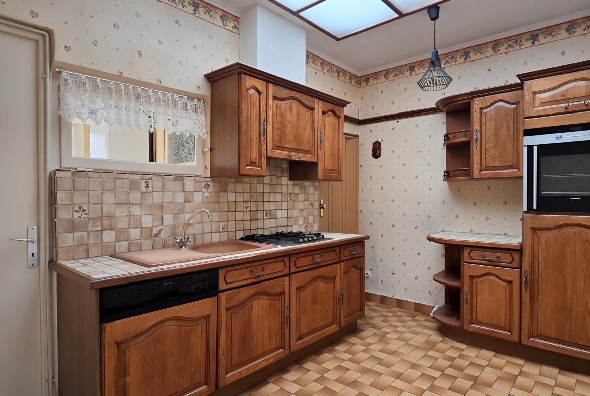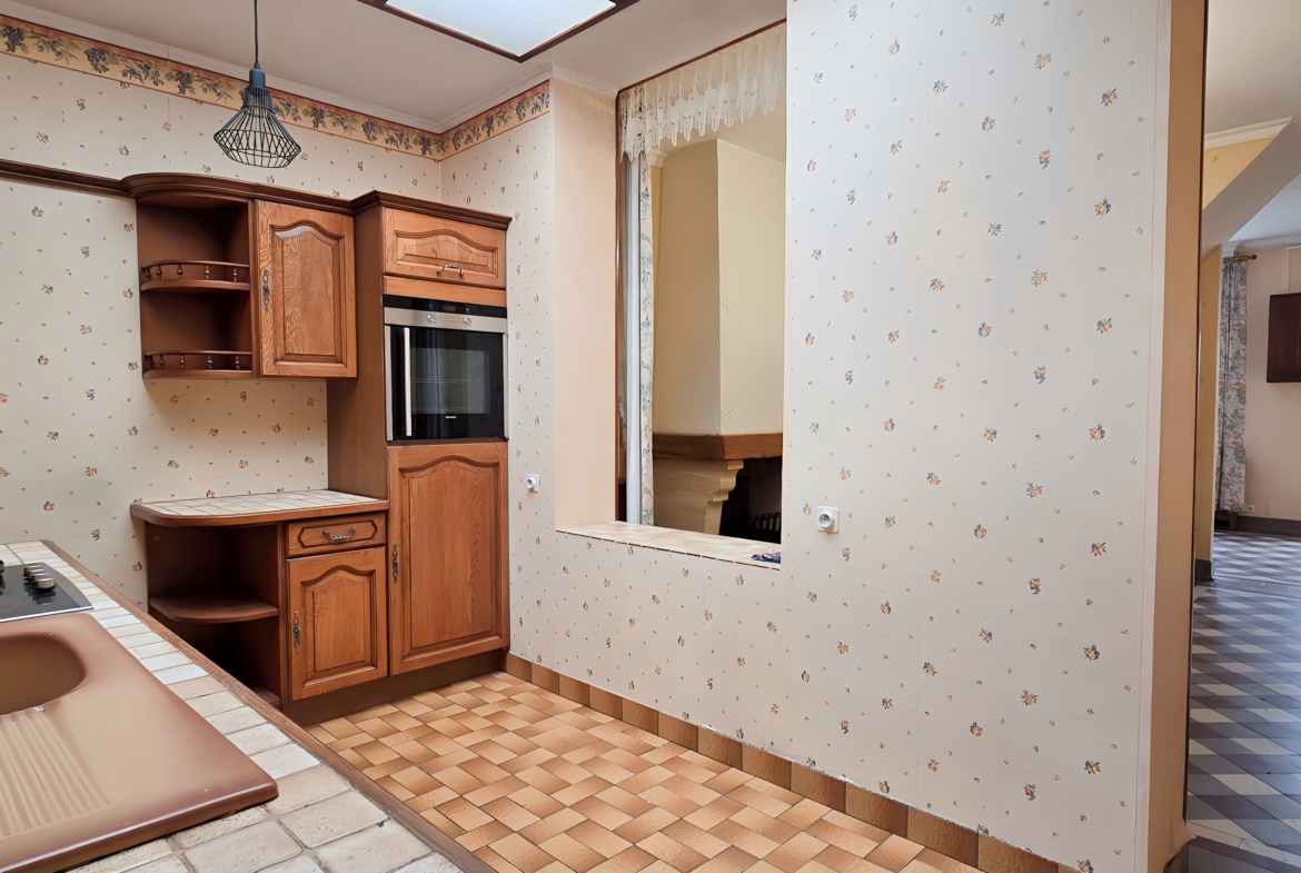 La cuisine équipée, fonctionnelle, permet déjà de vivre confortablement tout en laissant la liberté d’imaginer des évolutions futures.