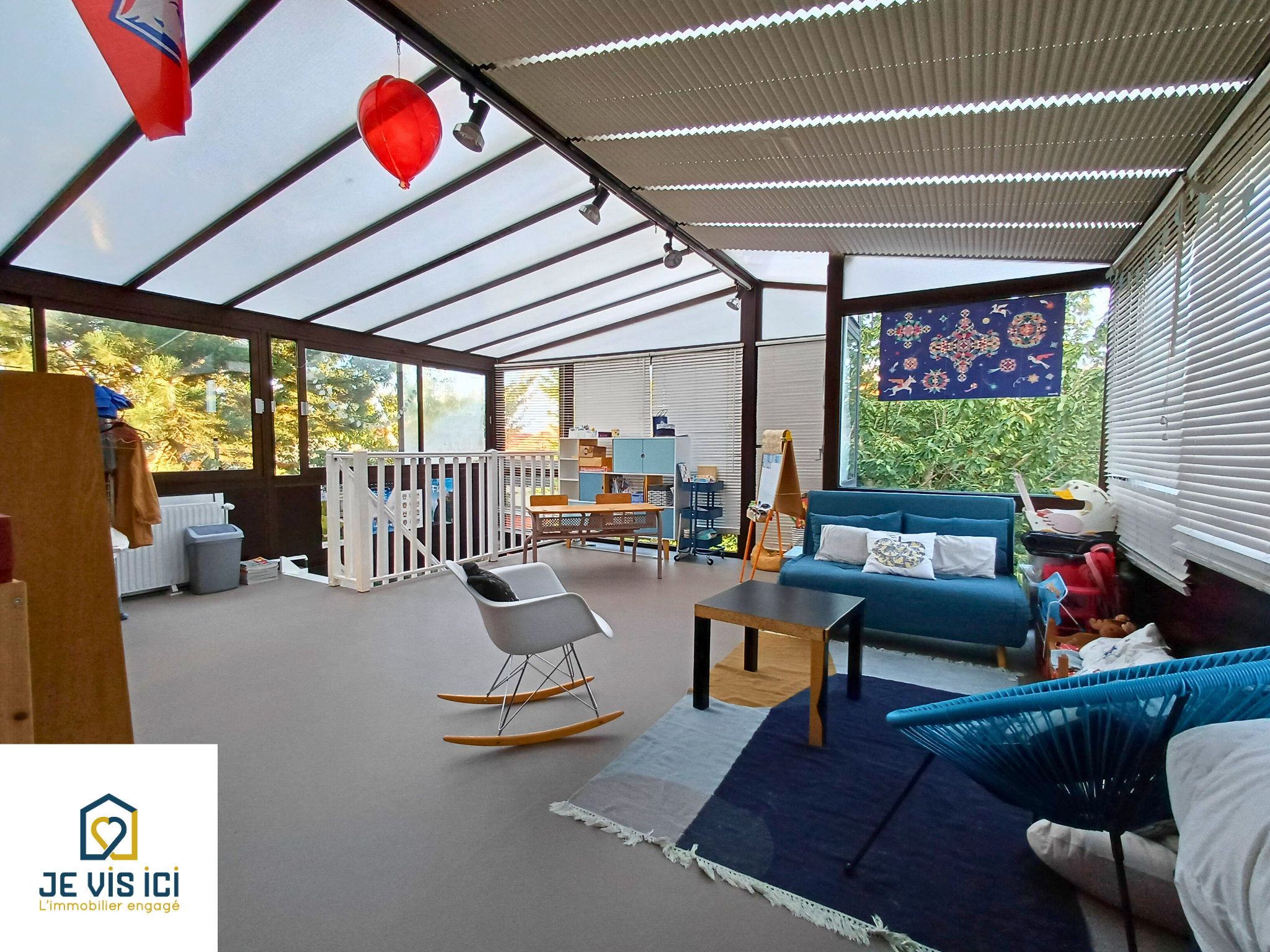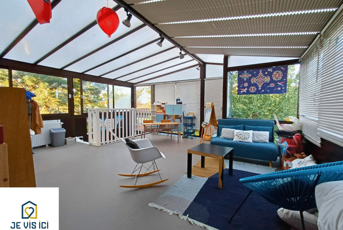 Aux 141 m² habitables s’ajoute une spacieuse véranda de 30 m². Cet espace lumineux et polyvalent saura s’adapter à vos besoins : salle de jeux pour les enfants, jardin d’hiver, atelier créatif ou bureau pour le télétravail.