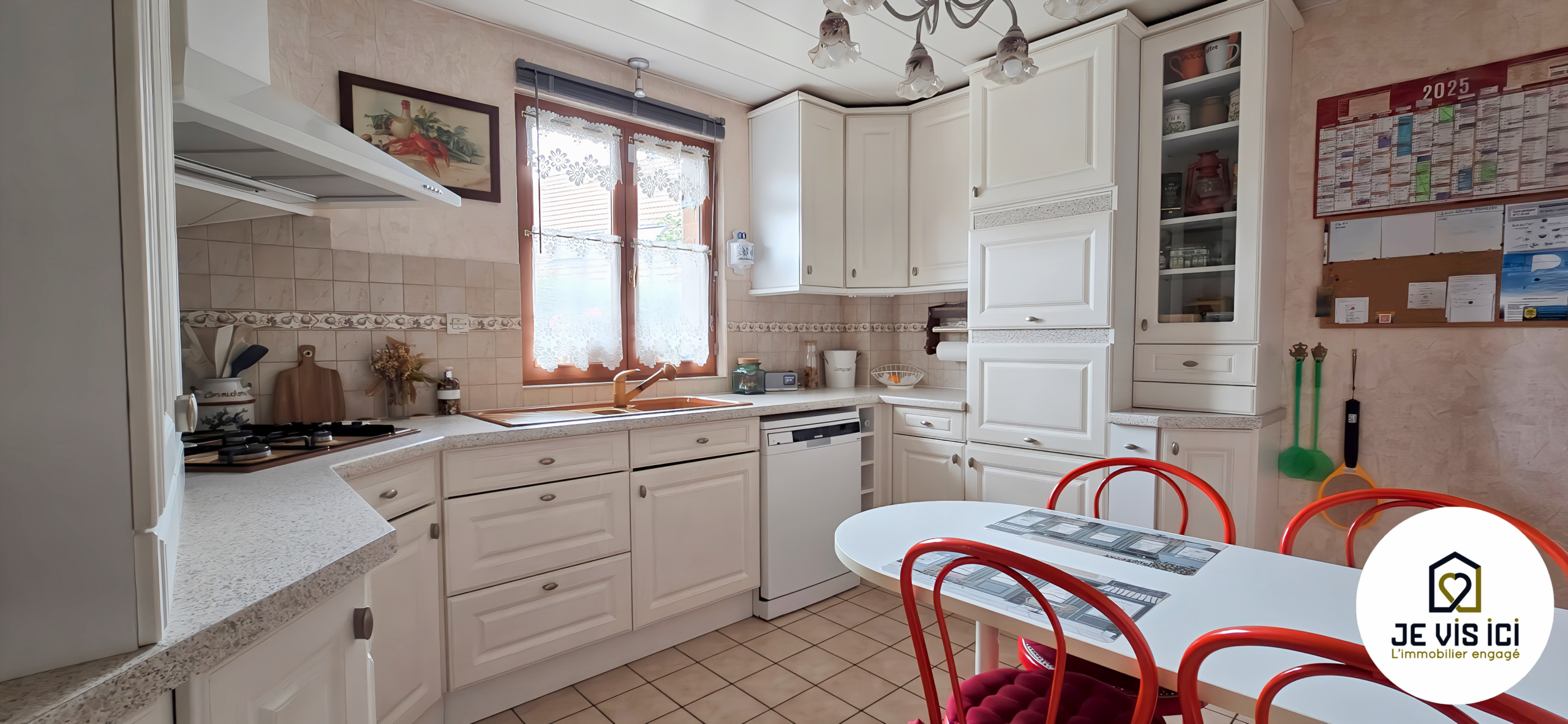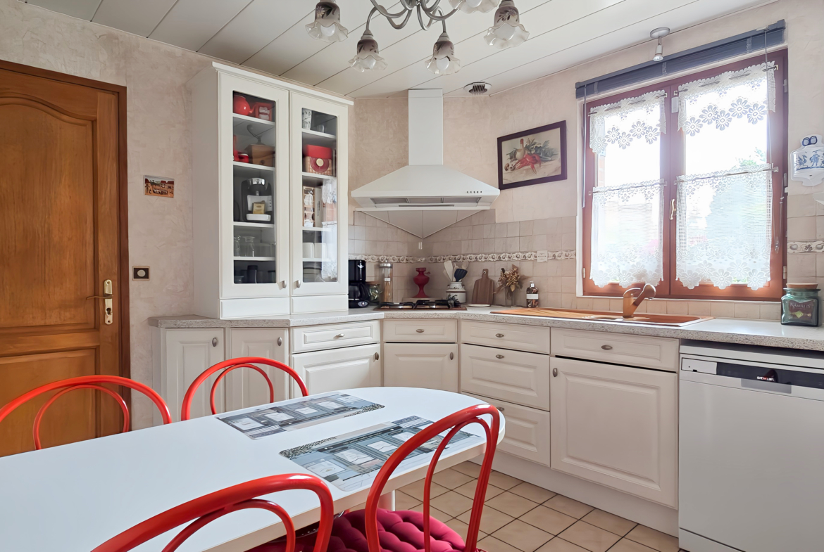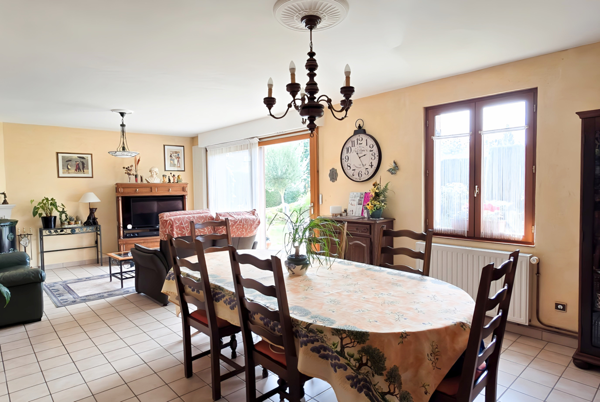 Construite en 1995 par ses propriétaires actuels, cette maison individuelle en brique et tuile a été choyée depuis sa création. De première main, elle témoigne d’une vraie exigence d’entretien : menuiseries bois double vitrage au cachet indémodable, poêle Godin pour les soirées d’hiver, chaudière gaz à condensation récente, diagnostics sains et sans anomalie majeure… Ici, tout inspire confiance.
