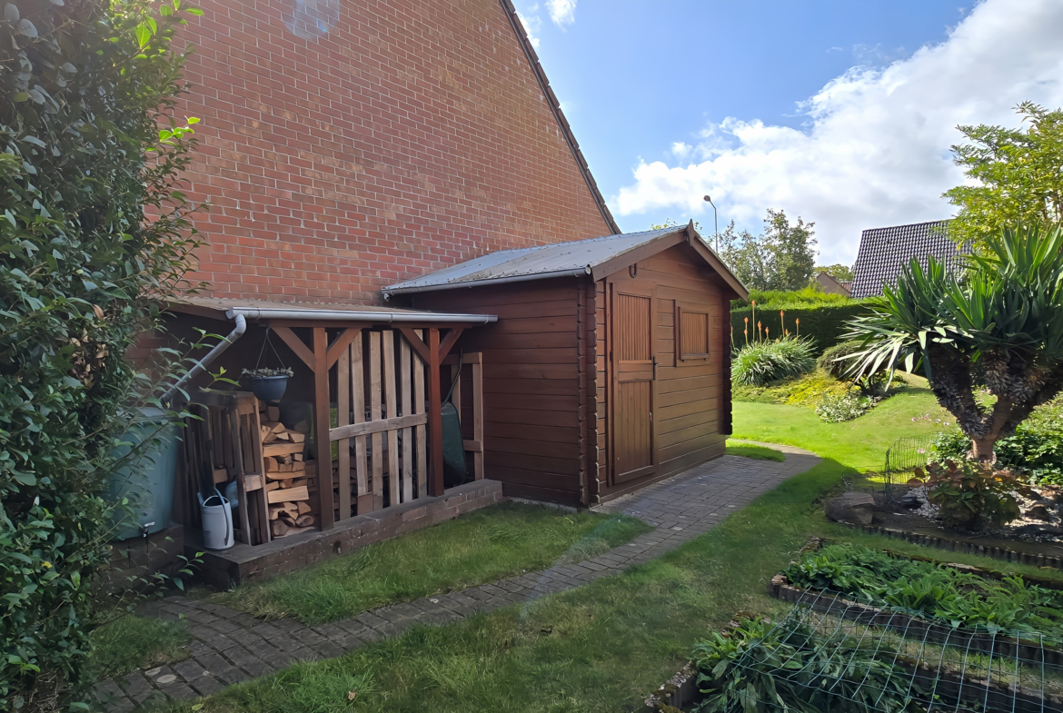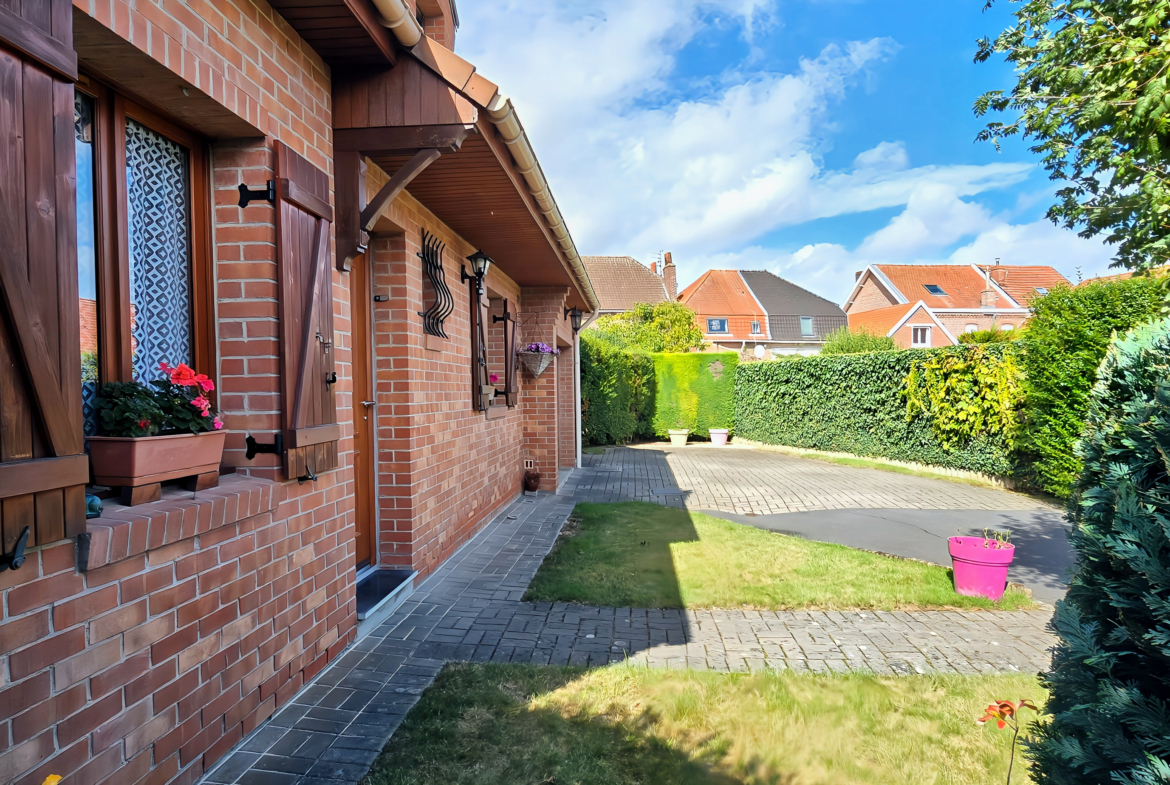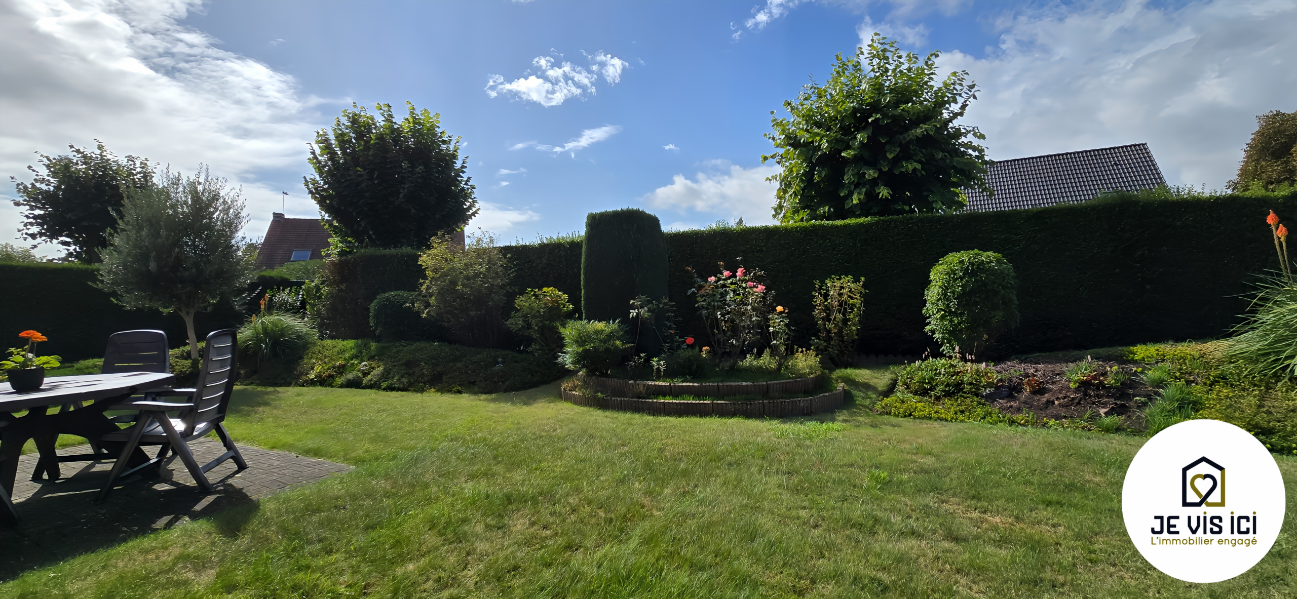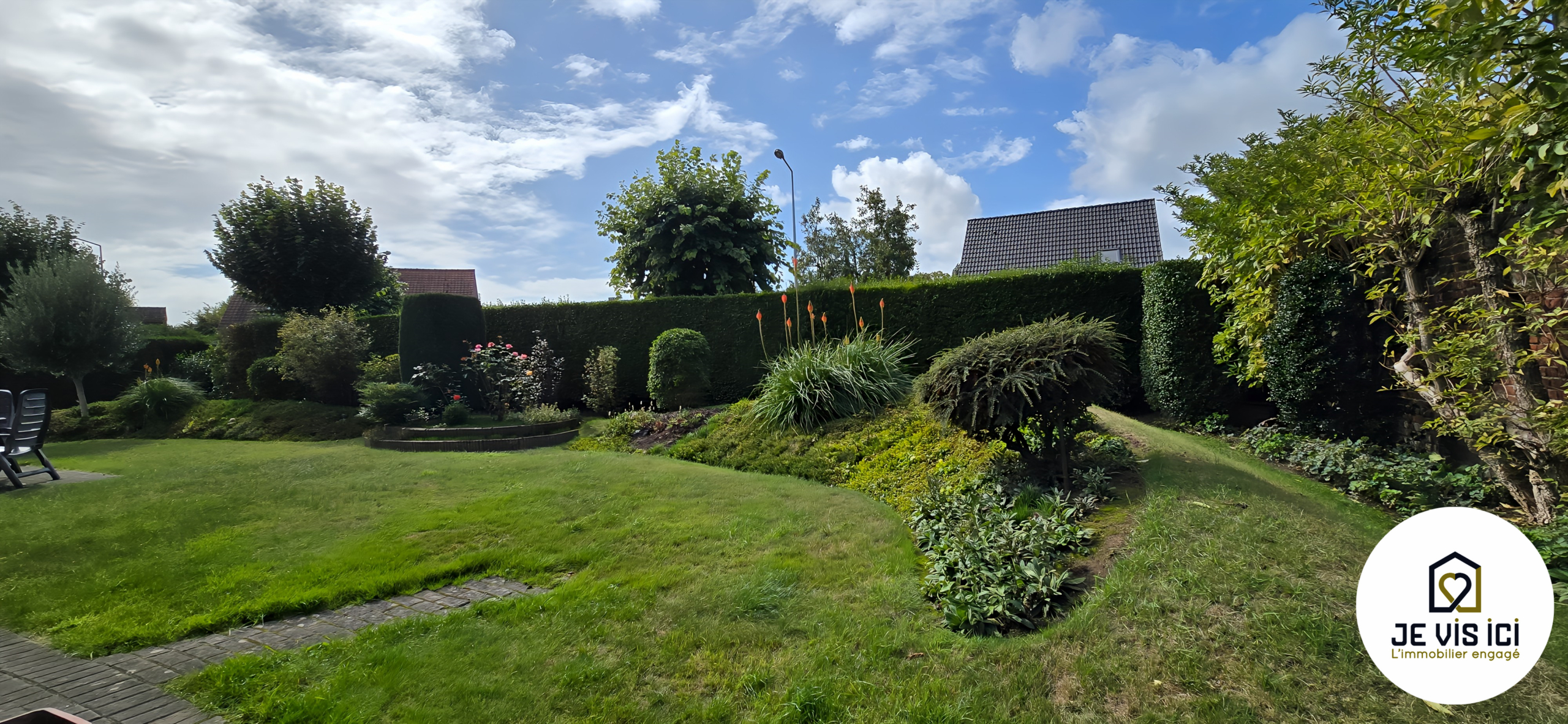 À l’extérieur, les amoureux du jardinage ou simplement des beaux extérieurs seront comblés : massifs fleuris, pelouse entretenue, grande terrasse carrelée et chalet de jardin composent un décor soigné, reflet de l’attention portée à chaque détail.