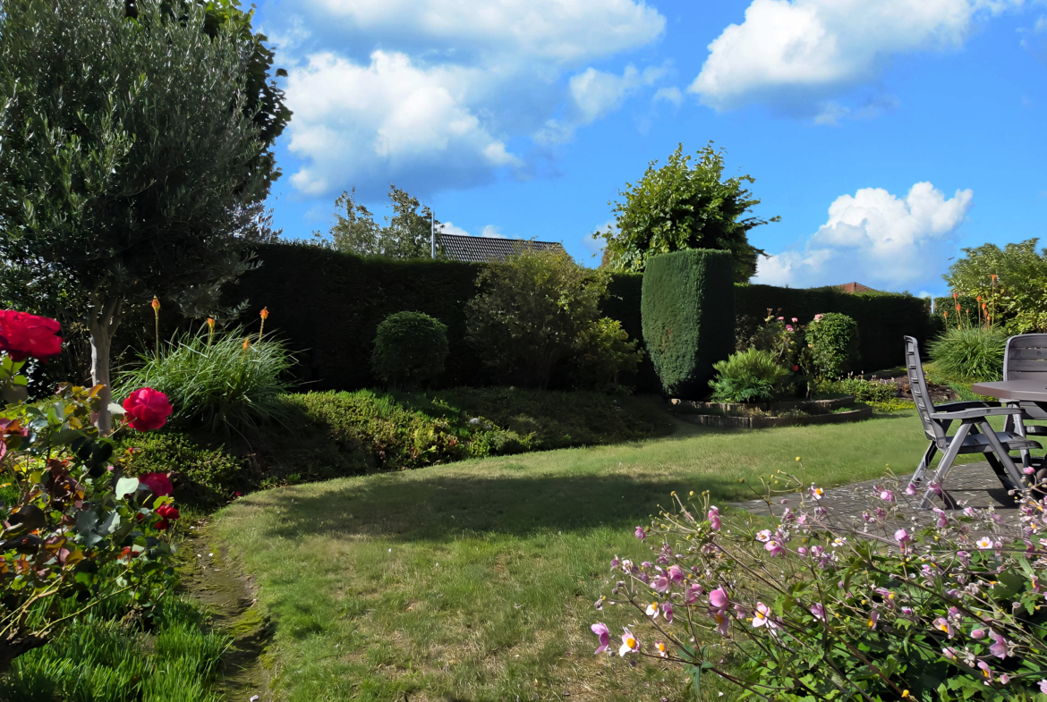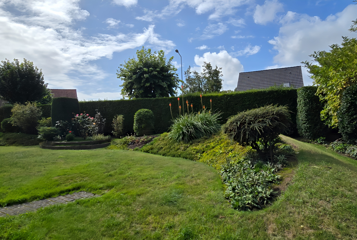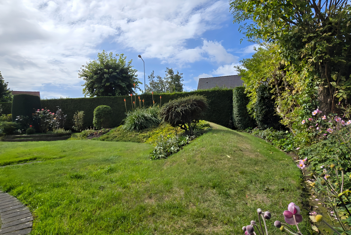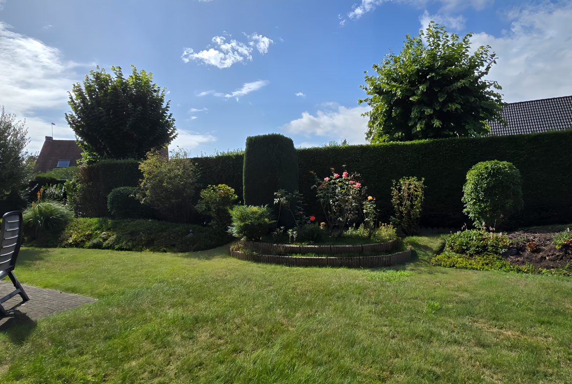 À l’extérieur, les amoureux du jardinage ou simplement des beaux extérieurs seront comblés : massifs fleuris, pelouse entretenue, grande terrasse carrelée et chalet de jardin composent un décor soigné, reflet de l’attention portée à chaque détail.