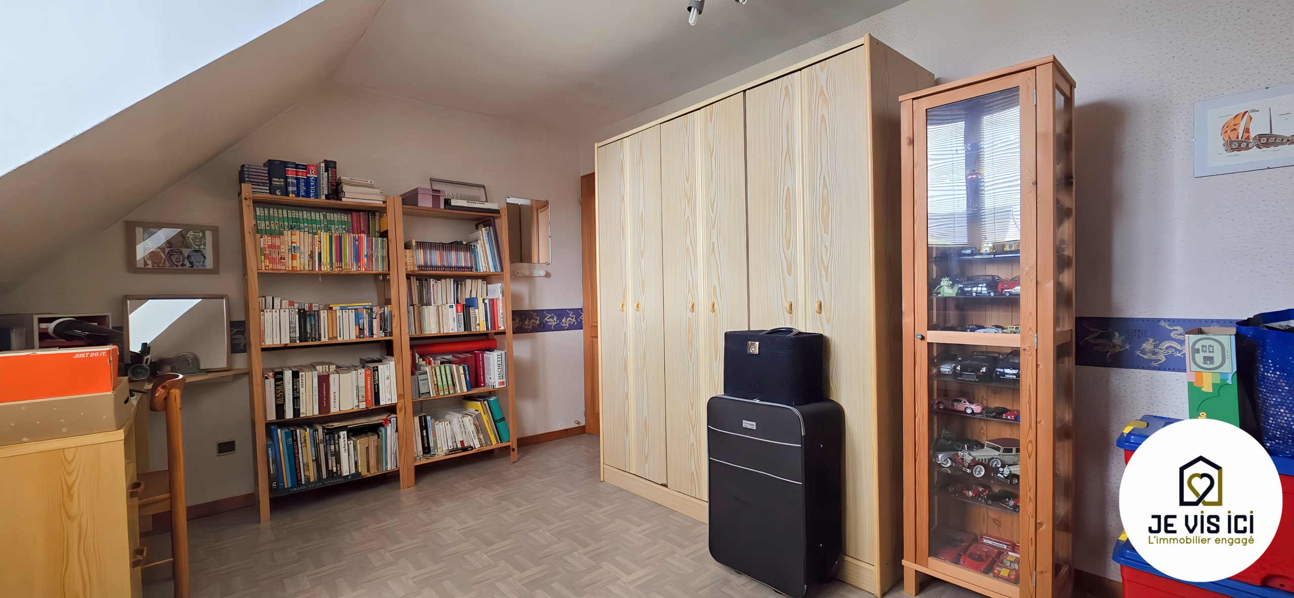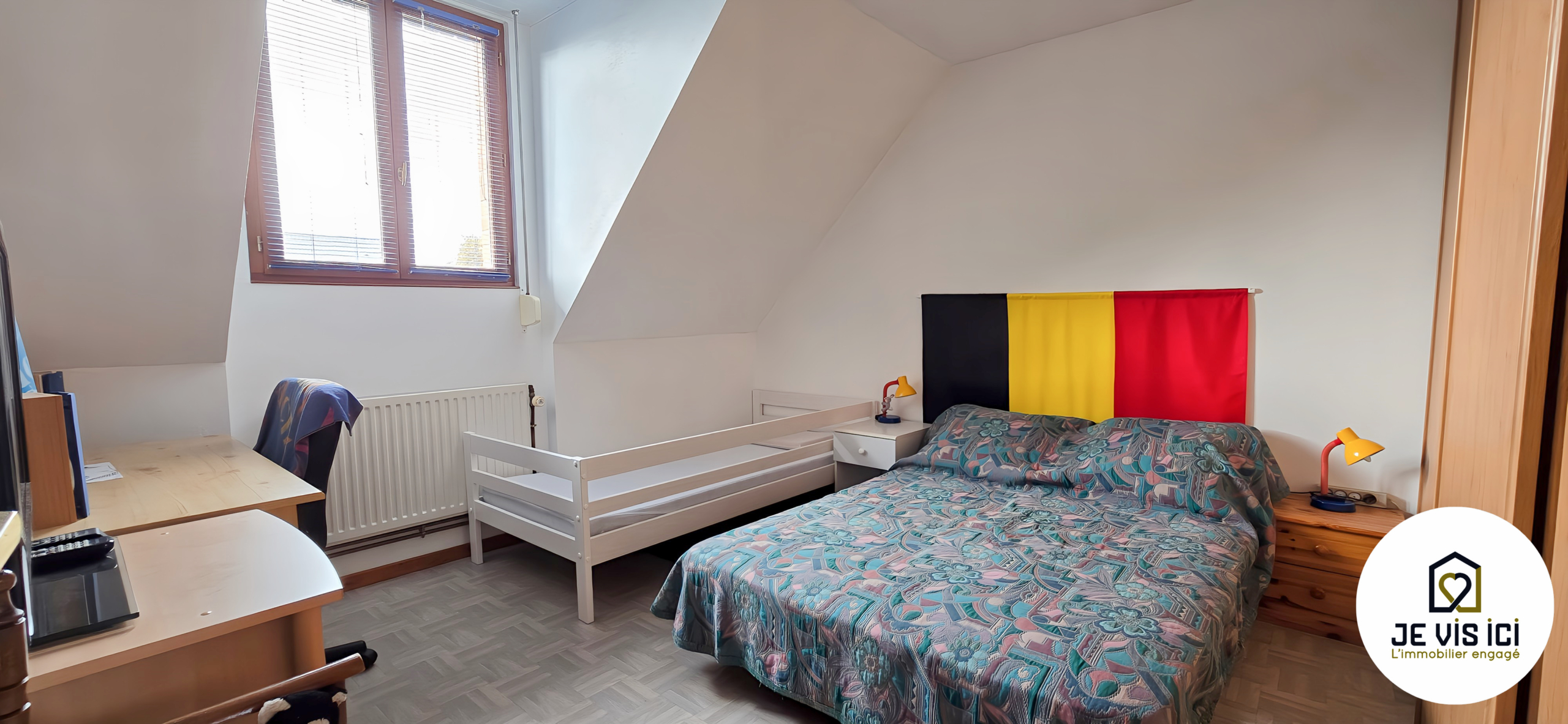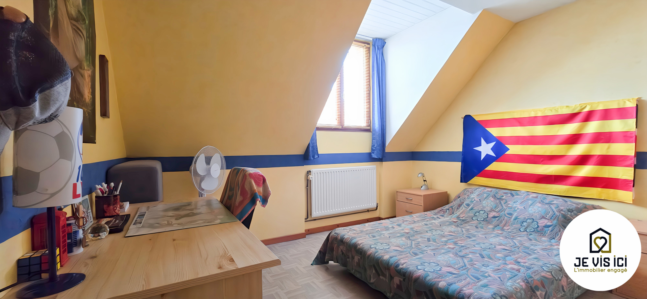 La chambre au rez-de-chaussée apporte un vrai confort au quotidien : parfaite pour recevoir, télétravailler ou préparer l’avenir en toute sérénité.