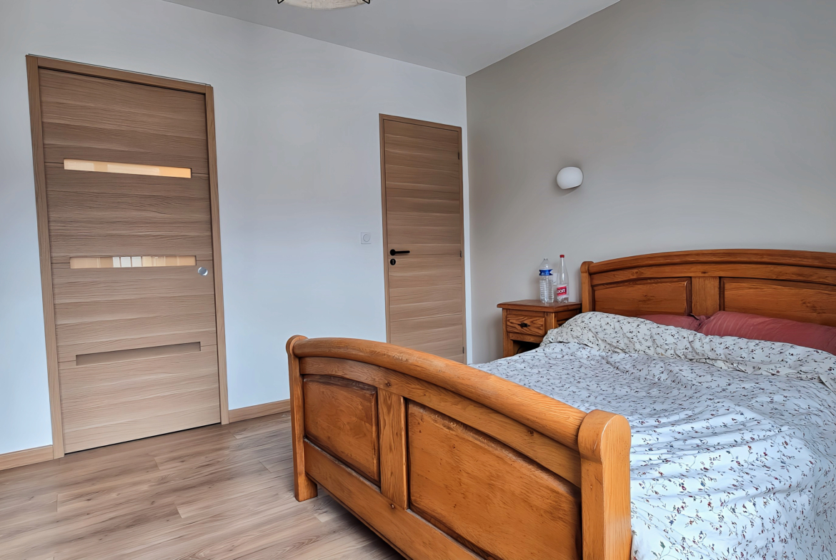 À l’étage, trois chambres composent l’espace nuit, dont une suite parentale avec sa salle de bain privative.