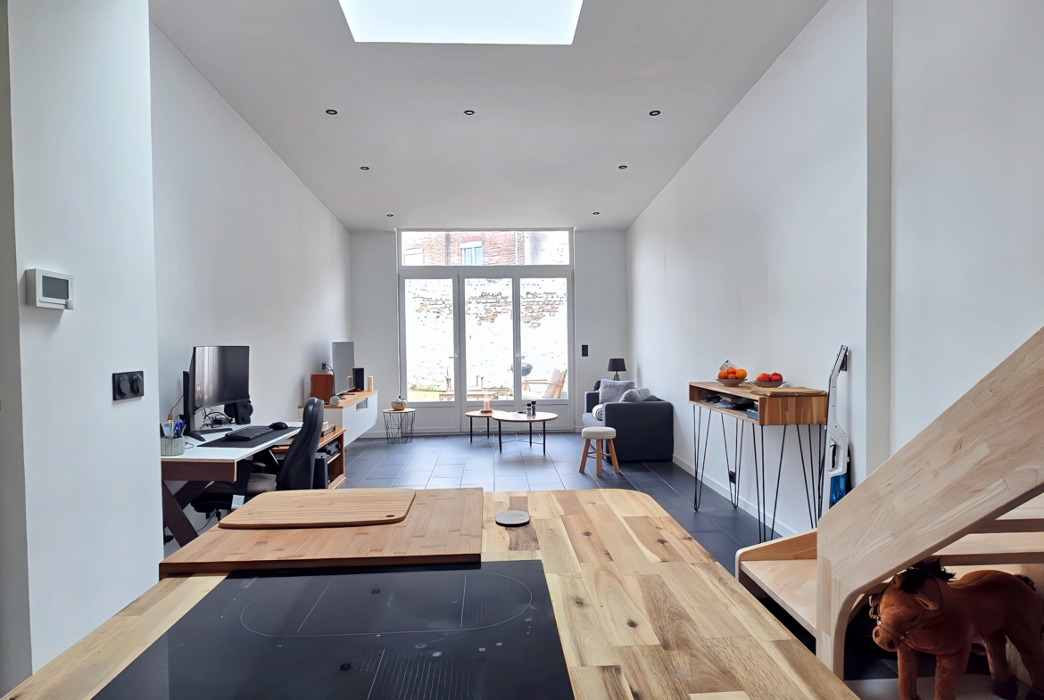 À Lille Lomme, dans un secteur calme, à seulement 750 mètres d’Euratechnologies et 1 km du métro, découvrez cette maison entièrement réhabilitée il y a deux ans, offrant un véritable esprit loft et une luminosité remarquable.